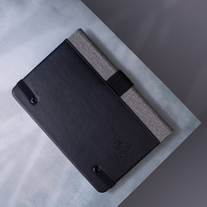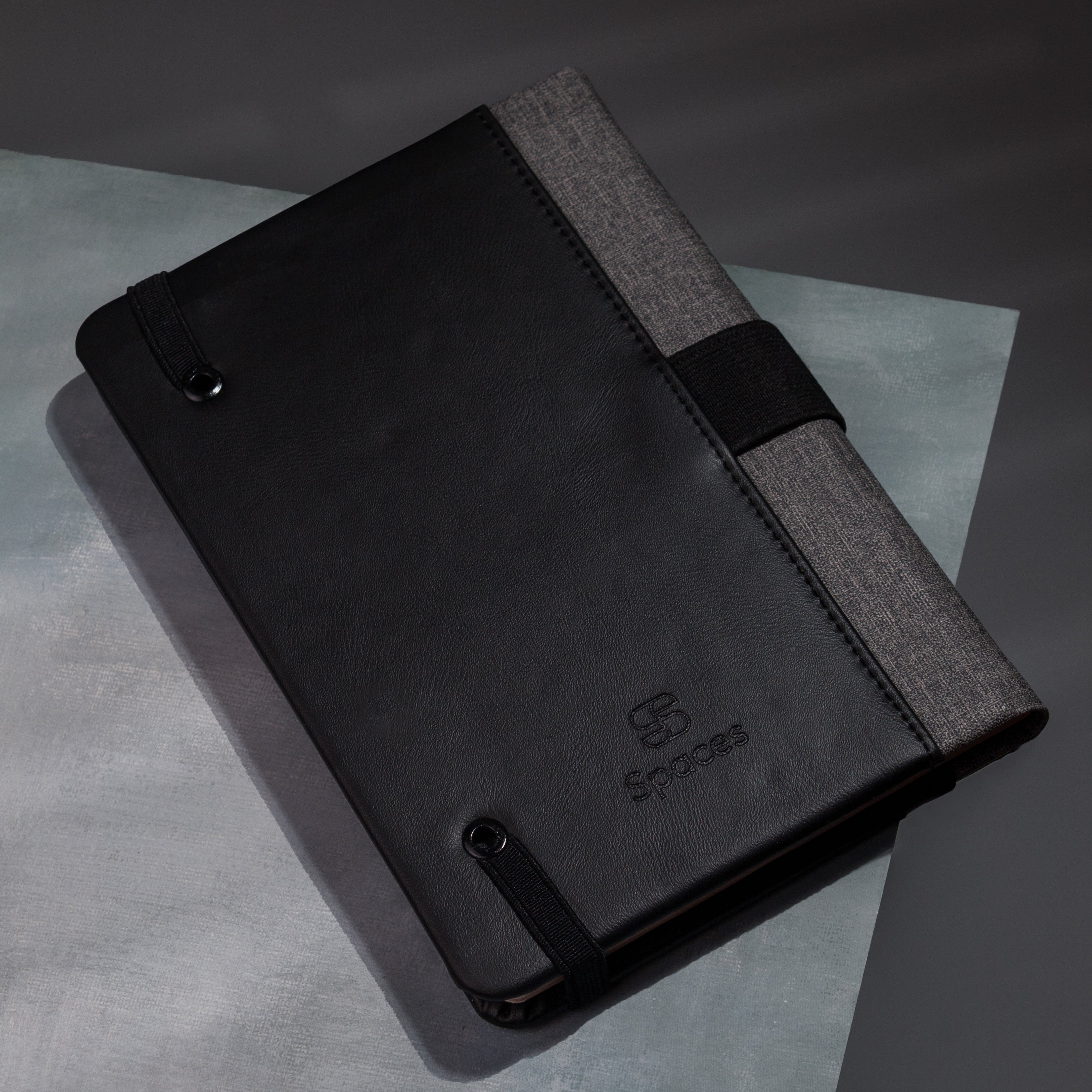 It features a smooth black leather cover with clean stitching and an elastic closure to protect the pages when carried. Inside, Spaces uses high-quality creamy paper chosen for its thickness and smooth texture, making it comfortable to write on and easy on the eyes.